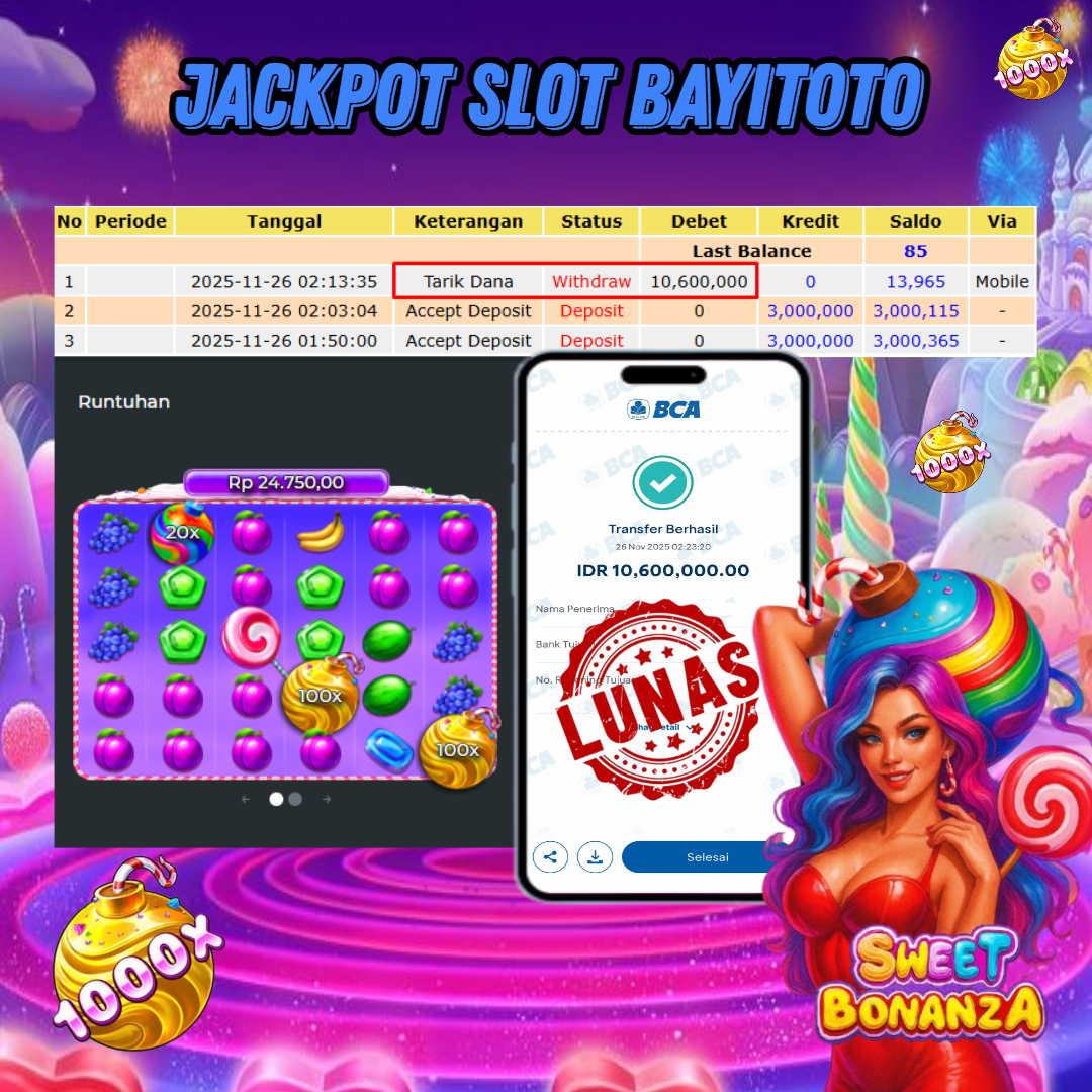 Selamat kepada User id : Jh**I6 Telah berhasil mendapatkan kemenangan besar pad