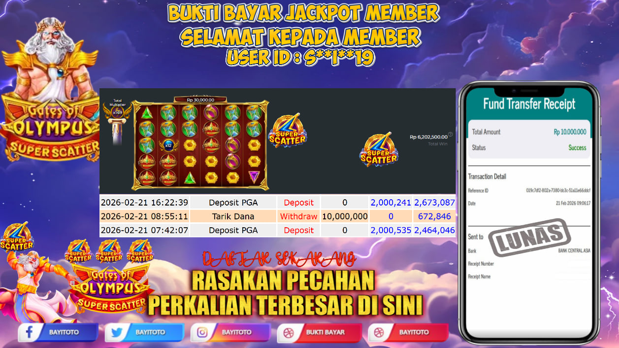 BAYITOTO JACKPOT SLOT RP. 19,000,000- JUTA RUPIAH LUNAS