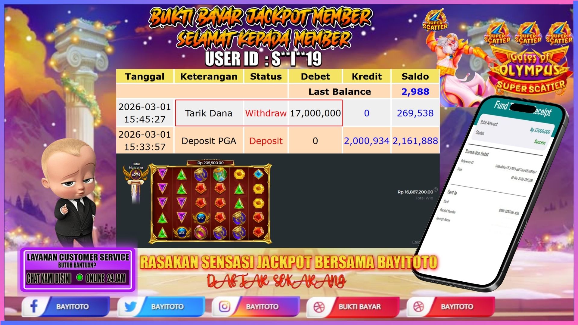 BAYITOTO JACKPOT SLOT RP. 7.000.000- JUTA RUPIAH LUNAS